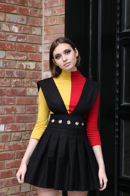 Queen of Hearts is a street-wear collection inspired by the card and character, Queen of Hearts. The collection combines heavier fabric like black denim with lightweight fabrics like mesh and tulle to create an edgy, but feminine aesthetic. The final collection features hand-painted textiles and playing cards in some of the designs.